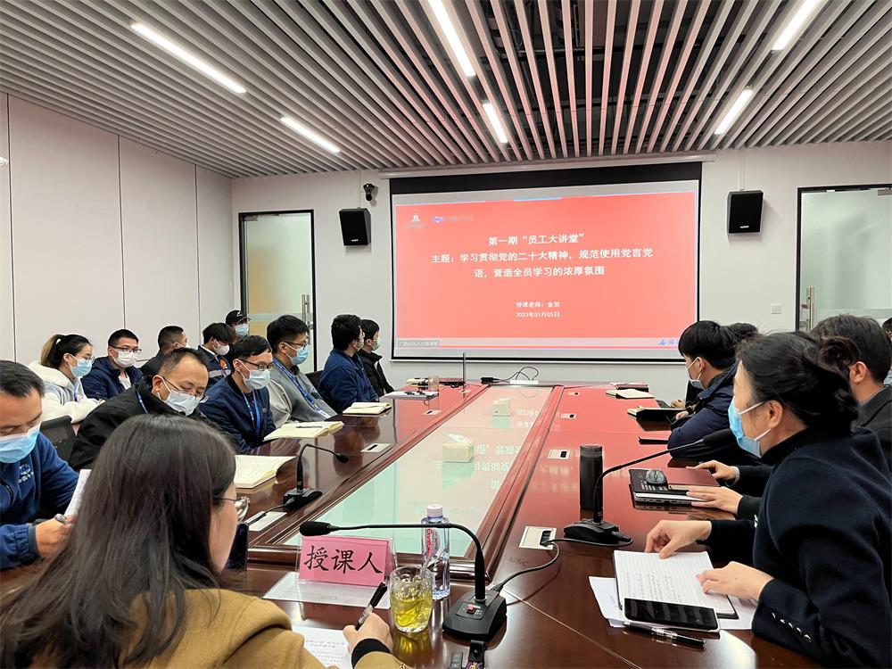 黨委書記結(jié)合黨的二十大報告對黨的建設(shè)新要求,立足實際工作中的細節(jié),對“學(xué)習(xí)貫徹黨的二十大精神”和“黨建業(yè)務(wù)基礎(chǔ)知識提示”兩個板塊進行詳細講解。過程中主題鮮明引導(dǎo)廣大員工用好“黨言黨語”、扎實推動黨建工作規(guī)范化標準化,內(nèi)容精彩翔實,現(xiàn)場不時響起熱烈的掌聲。最后,黨委書記對開展好“員工大講堂”提出要求,領(lǐng)導(dǎo)班子帶頭講、部門負責(zé)人必須講、邀請專家專題講、鼓勵青年及所有員工踴躍講,進一步示范帶動全公司形成濃厚的學(xué)習(xí)氛圍。